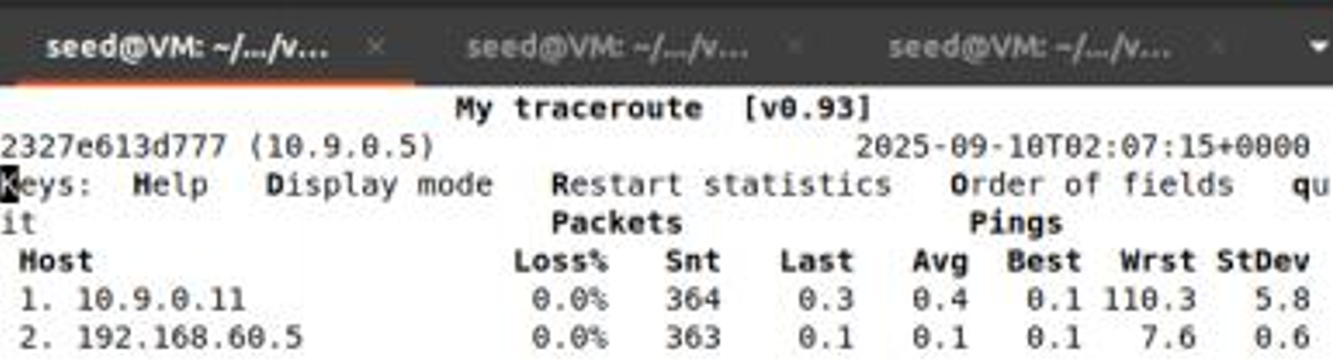 Initial State: Using mtr -n 192.168.60.5, we confirmed that traffic initially flowed directly through